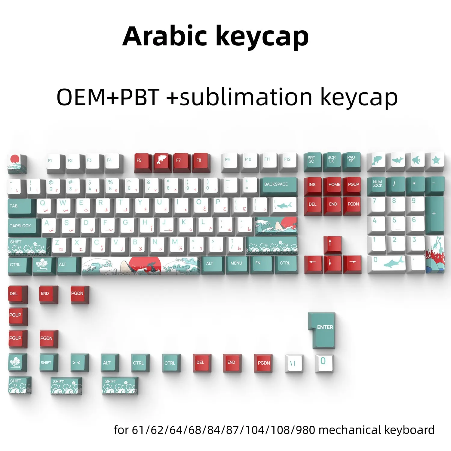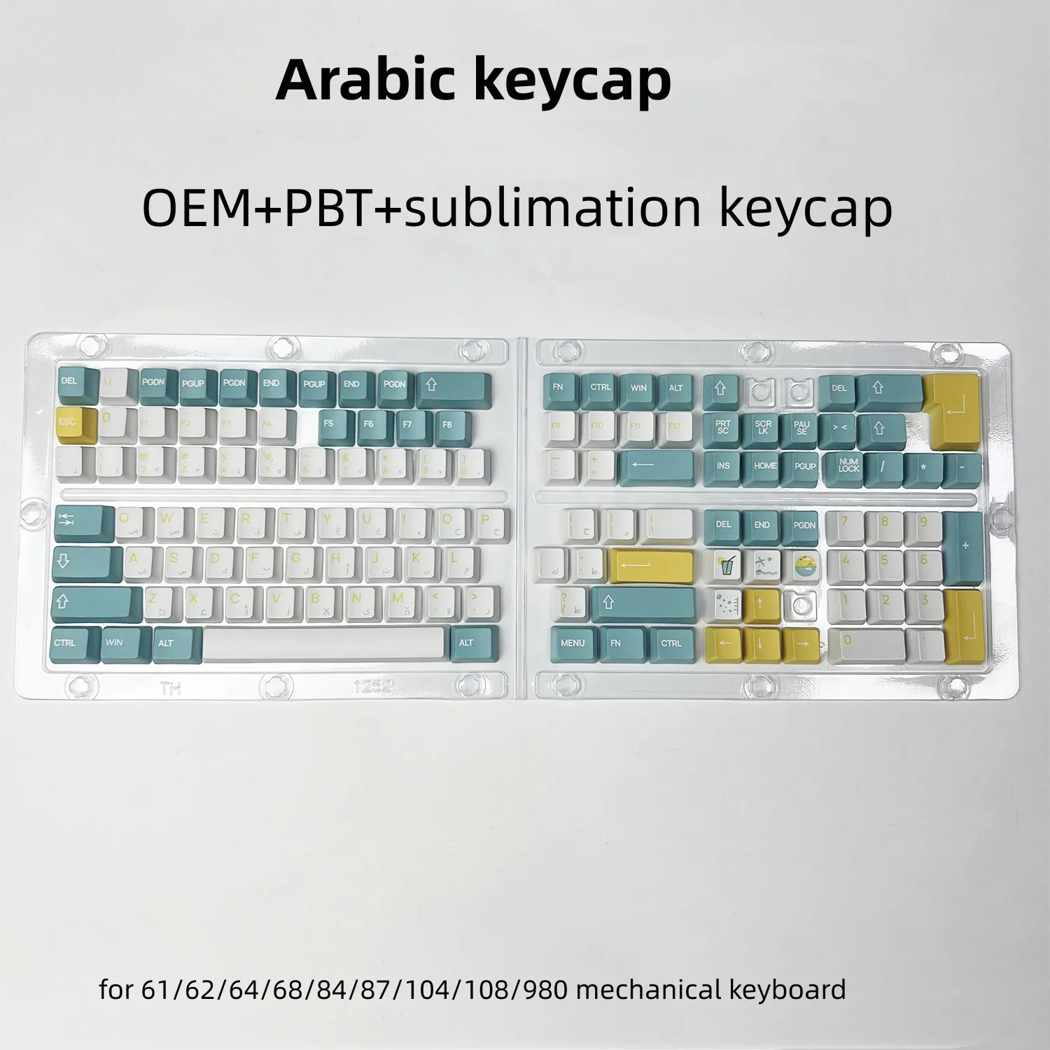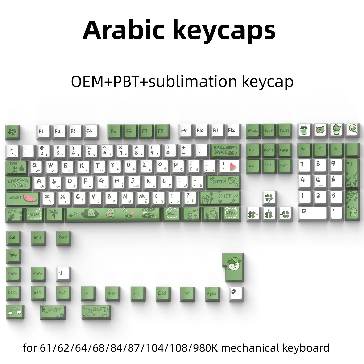 129 Keys Arabic Keycaps Set PBT/ABS Cherry Profile OEM Keycap Gaming Custom Personalised Cute for MX Switch Mechanical Keyboard
