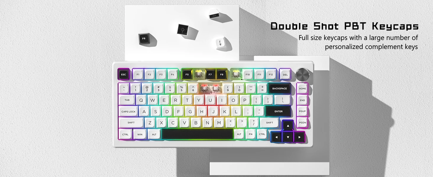 • 【Double Shot PBT Keycaps】Made from high content PBT material, with matte texture and durability. These keycaps uses double shot process, which does not cause the characters on the keycap to dent or protrude, nor does it cause the characters to disappear due to wear and tear from use